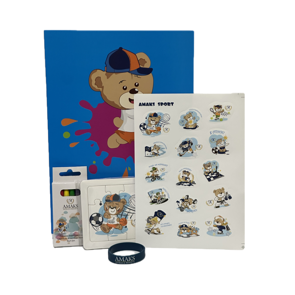 В детский набор входят: Детские рюкзак , раскраска-путеводитель, мелки, брелки и магнитики.