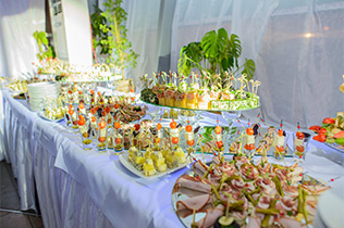 我们建议在欢迎自助餐中加入小食、小食、原汁原味的甜点、水果和软饮料。 欢迎区将装饰一张香槟幻灯片,这将给客人留下惊人的印象,并给您的假期一个特殊的心情。"